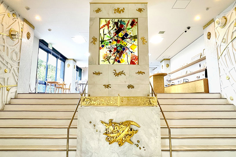 館内に入ると、輝きを放つガラス装飾の作品に目を奪われ、これからはじまるアート空間に期待が高まります。