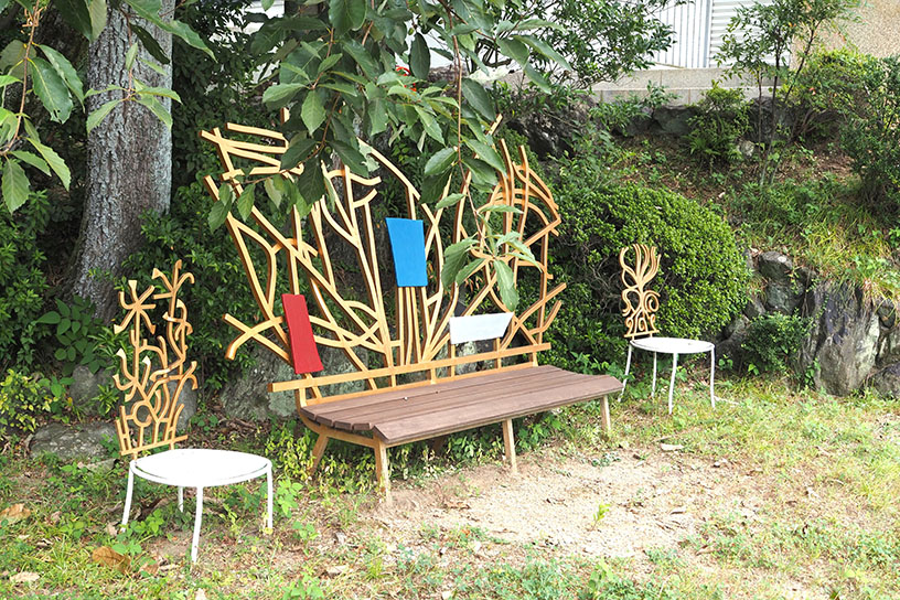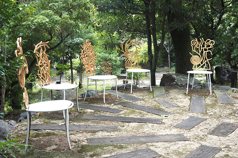 建物横には無料で散策が楽しめる庭園があります。作品鑑賞の後は、印象デザインの椅子に腰掛け、ゆっくりひとやすみしてみてはいかがでしょう。