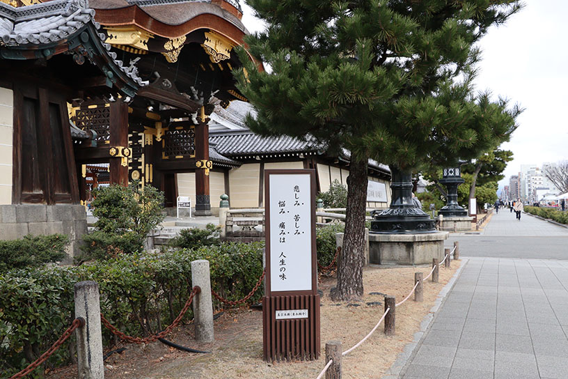 散策時には烏丸通の歩道沿いに等間隔に設置されている「法語行灯」にも注目を。仏教の教えを説いた、ありがたい言葉が書かれ、不定期で更新されるそうです。ウォーキング途中の励みになるかもしれませんね。