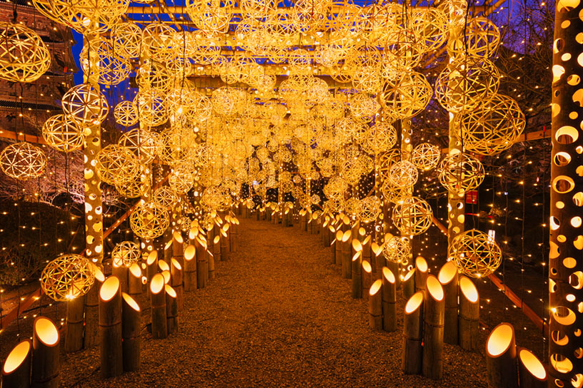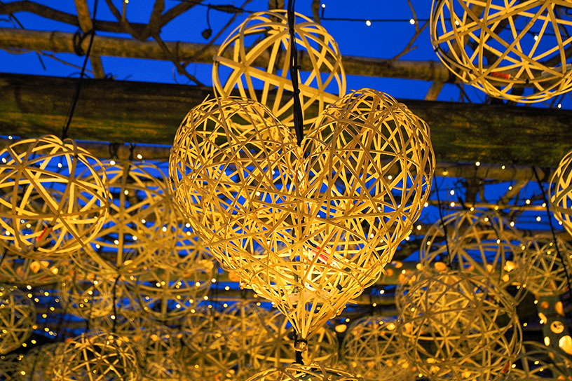 じつは、無数の竹あかりのなかに、ひとつだけハート型が隠されています。ゆっくりと歩きながら、幸運のしるしを探してみてくださいね。