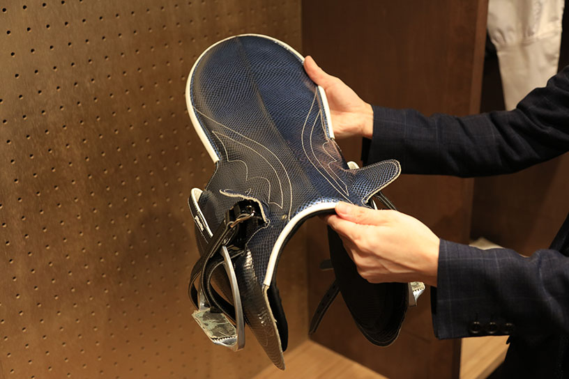 ルメール騎手は日本へのリスペクトを込めて、すべて日本製にこだわっています。実際に職人さんに会いに行くこともあり、京都では漆や金箔の工房を訪ねたと教えていただきました。