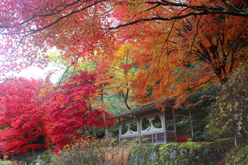 京都の奥座敷・貴船の少し手前、叡電「二ノ瀬駅」近くに位置する白龍園。静かな安養寺山麓に、自然と調和した広大な日本庭園が広がります。アパレルメーカー青野株式会社の創業者、青野正一氏が、社員・家族とともに丁寧に手入れされてきた通常非公開のお庭で、春の桜やツツジ、青もみじ、秋の紅葉シーズンに特別観覧が行われます。東屋のカンアオイの窓越しに眺めるアートな風景も見どころ。事前予約制(人数限定)のため、ゆっくりとお楽しみいただけます。