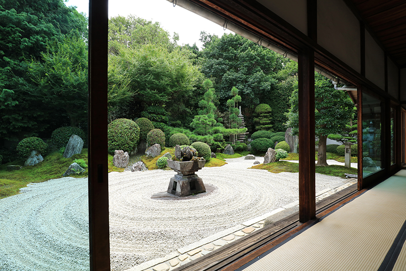 明徳元年(1390)、岐陽方秀(ぎようほうしゅう)によって創建された東福寺の塔頭寺院。幕末には、西郷隆盛と清水寺成就院の住職であった月照が幕府転覆を密議した場所と伝わる。江戸時代の名庭「九山八海の庭」は、昭和45年(1970)に作庭家・重森三玲が復元したもの。書院西側には新たに「臥雲の庭」が造られた。「九山八海の庭」に据えられた「遺愛石」は、熊本藩主であった細川忠利から贈られたもので誉れ高い。