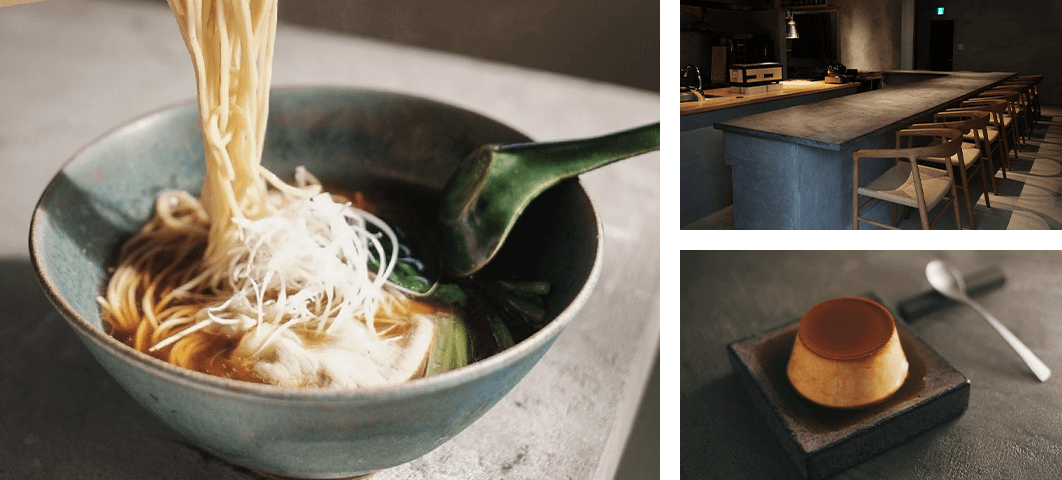 オープンから1年でミシュランのビブグルマンを獲得した、予約の絶えない実力派。煮干しや昆布、節類の旨味がブレンドされた魚介出汁と、化学調味料・保存料不使用の特製出汁醤油が生み出す濃い色の透き通ったスープ。そこに京都産小麦100%の麺が香ります。油は舞茸を抽出した太白ごま油、器は京都の清水焼と店主のこだわりが隅々まで行き届いたラーメン。卓上には3種の七味が用意されており、途中でふるとコク深いスープが引き立ちます。初めての方へのおすすめは「ちゃーしゅー麺」。サイドメニューも充実していて、美山牛乳で作る和三盆プリンが人気です。住宅街を進んだ先にある空間は、ラーメン店のイメージを一新させてくれるはず。