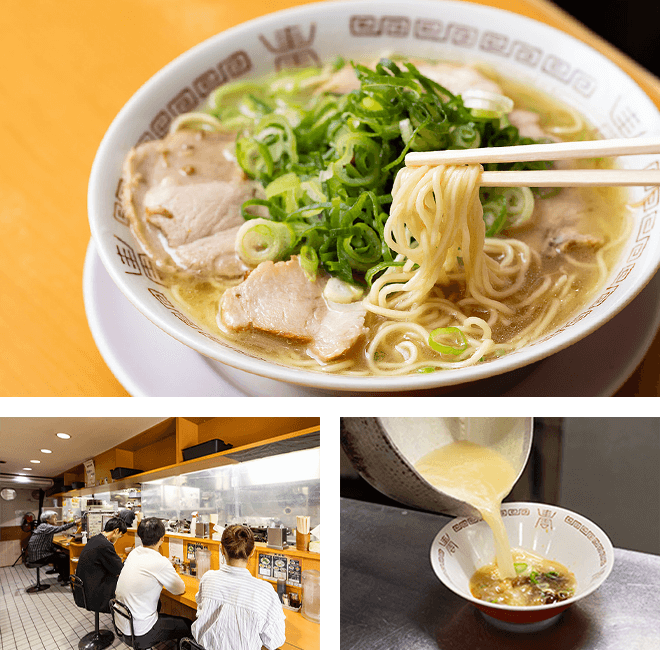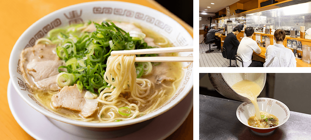 戦後間もない昭和25年から、今に至るまで屋台の味を受け継ぐ京都ラーメンの名店。鶏ガラ、モミジを使った鶏白湯スープに老舗の醤油と背脂を加え、自家製チャーシュー自家製メンマ、九条ねぎをトッピング。こってりとした見た目ながら、飽きのこないさっぱりとした後味で、地元の人に愛されるソウルフードです。