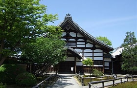 ねねの道から階段で上った先にある御社。豊臣秀吉の正室・北政所ねねが高台寺創建時に崇拝していた綱敷天満宮の祭神・菅原道真公を勧請し鎮守社としました。菅原道真公の学問をはじめ、天下統一した秀吉とねねに因み開運、出世、健康長寿のご利益があると言われています。2026年の大河ドラマにあわせて、高台寺では2026年1月9日(金)から3月4日(水)まで客殿(現在再建中)の襖や秀吉愛用の品々が「京の冬の旅」の特別公開として展示されます。
