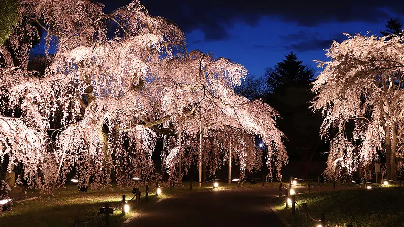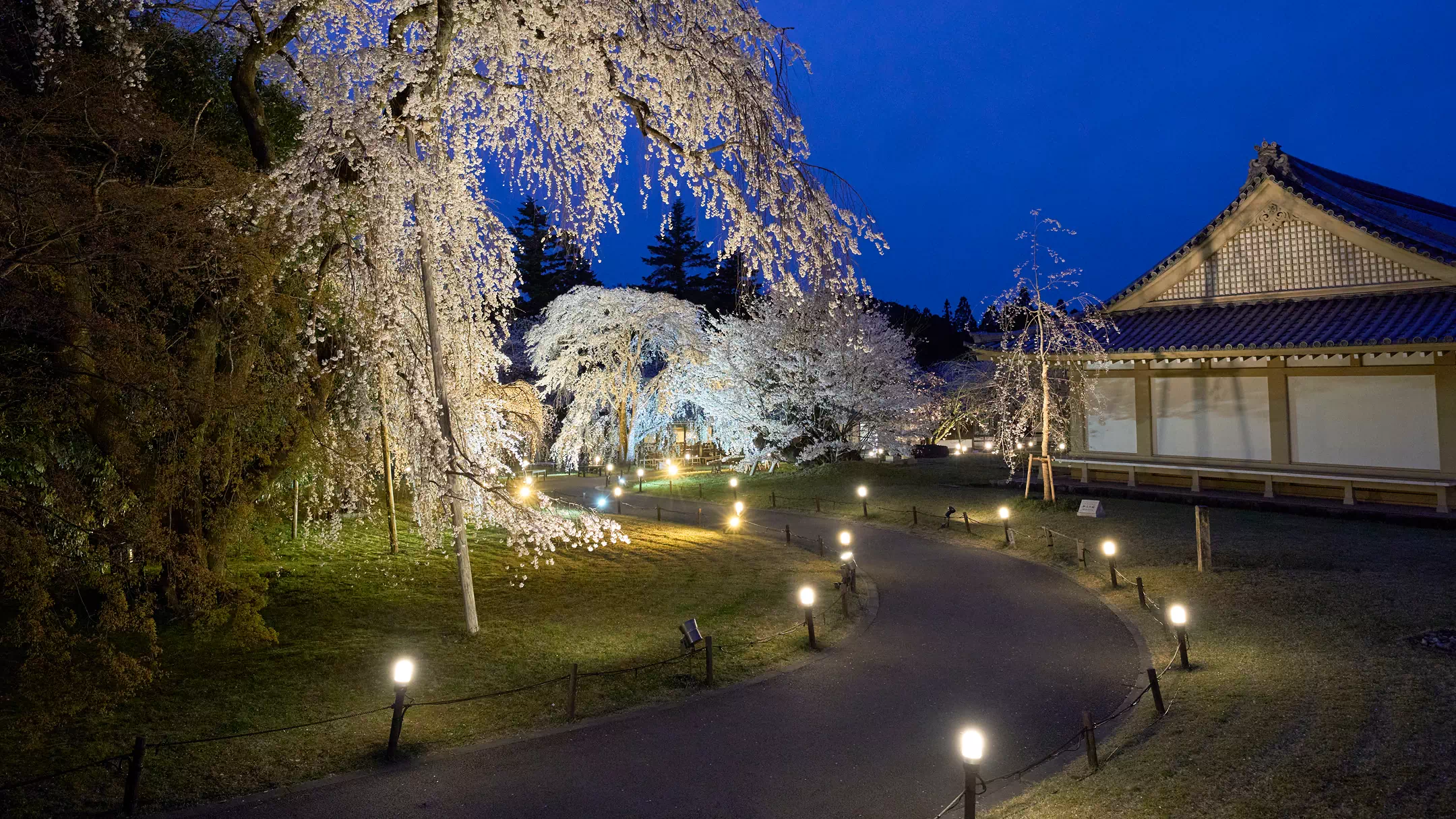 暗闇をキャンバスにライトアップされる桜は、日中とは様相が一変。光が描き出す花姿は、美しさに加え、妖しく幻想的な気配を滲ませます。まさにお花見旅のハイライトとも言える、忘れがたい光景になること請け合いです。